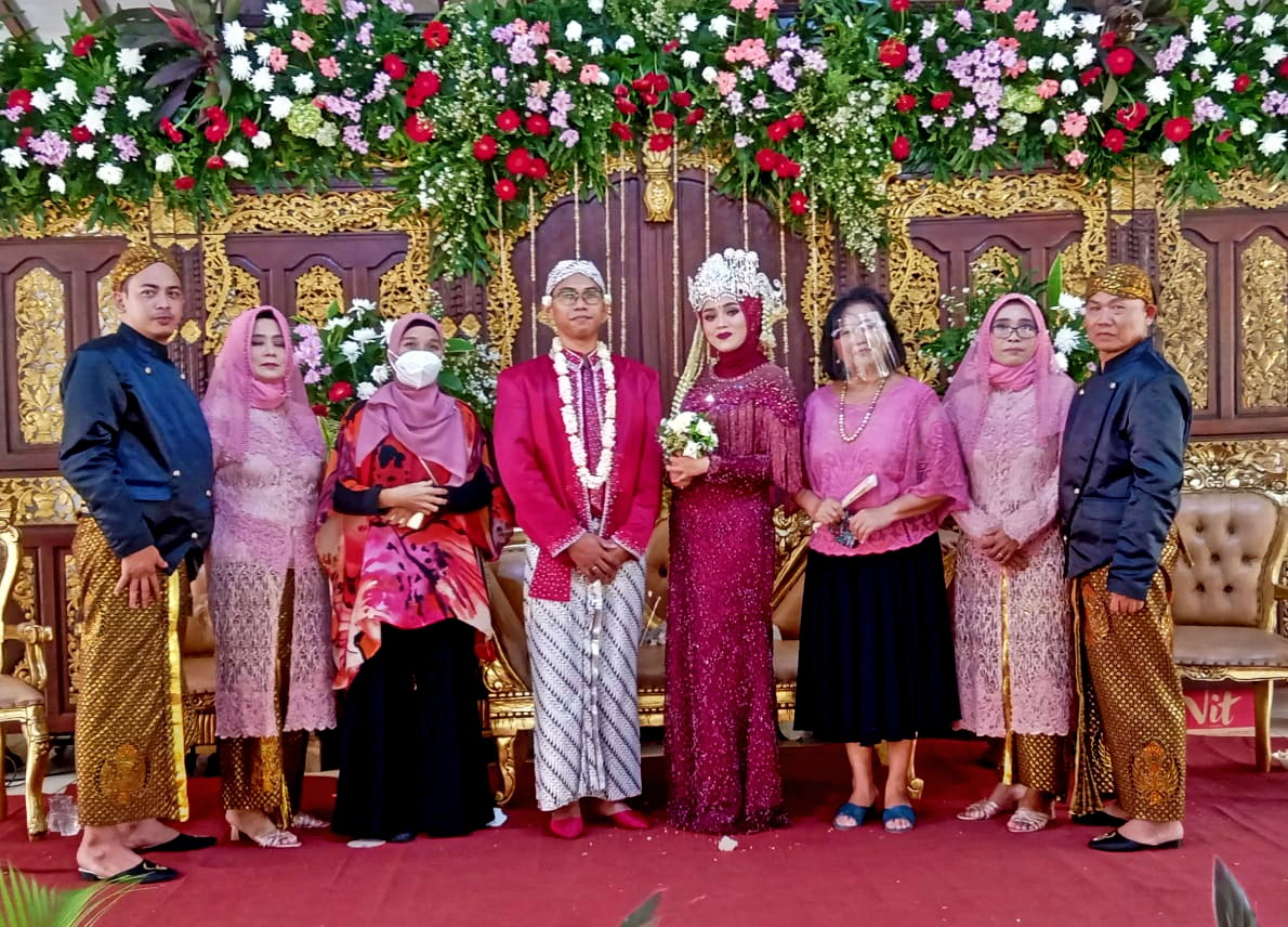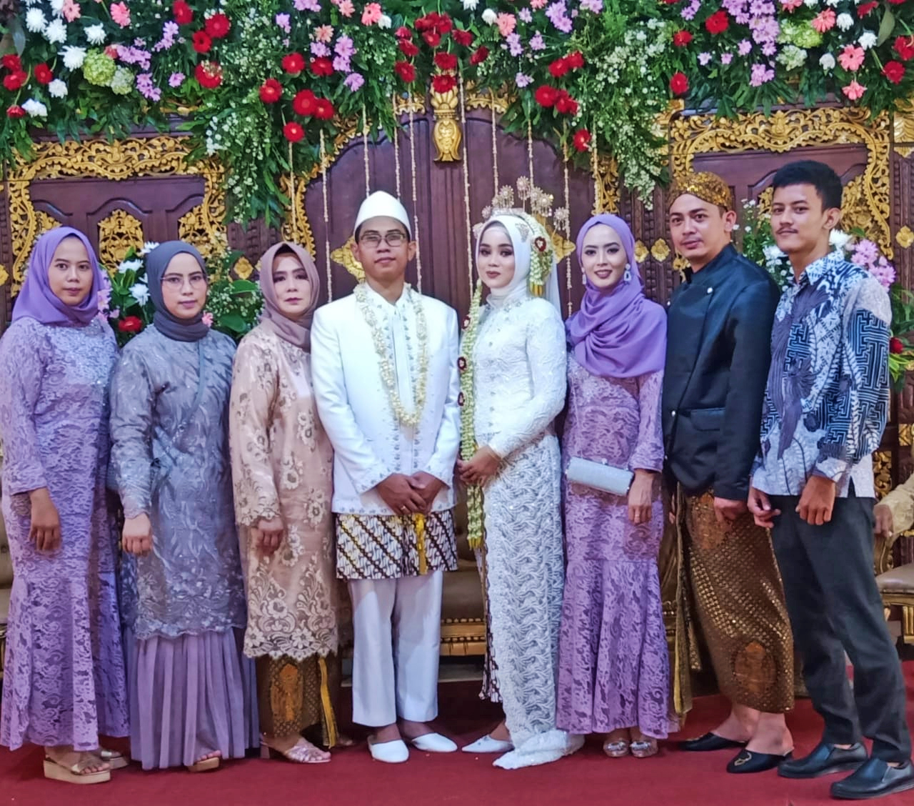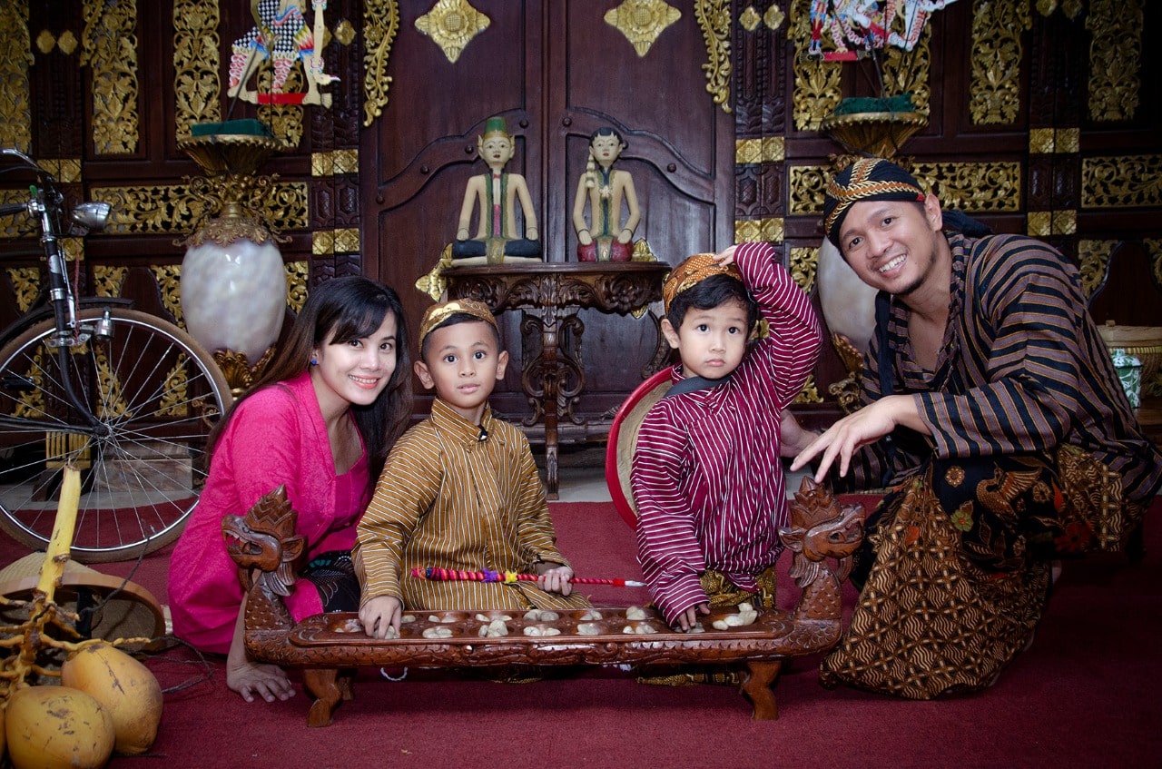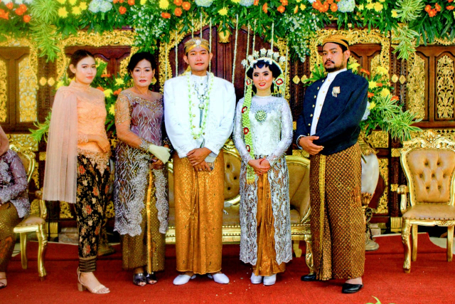 Keluarga muda sedang berpose menggunakan adat jawa tradisional