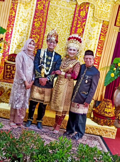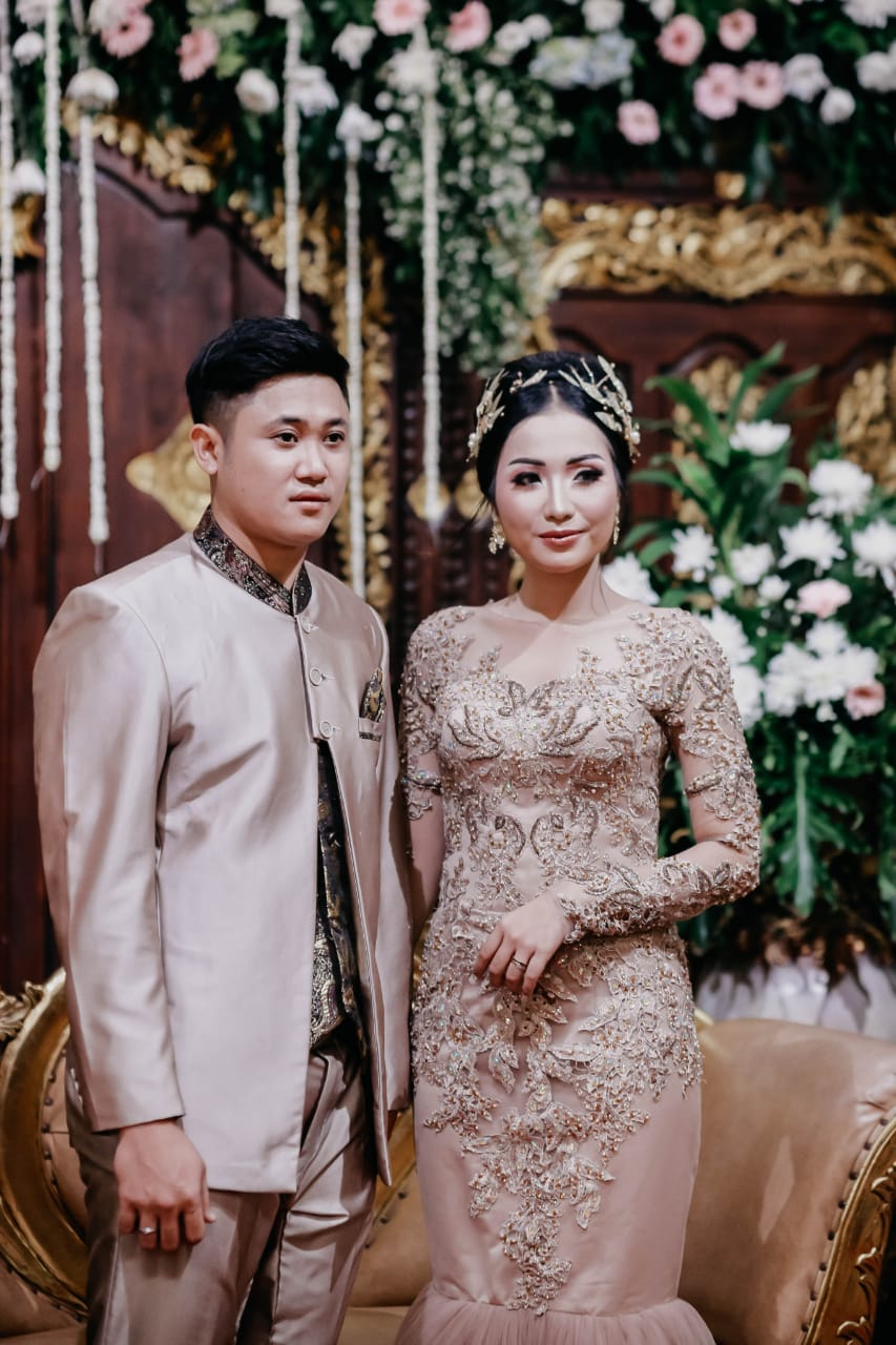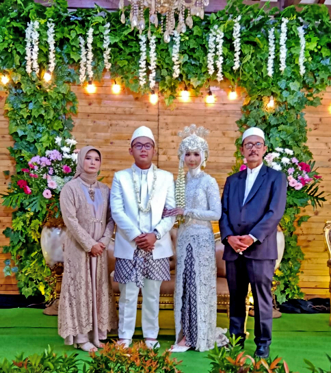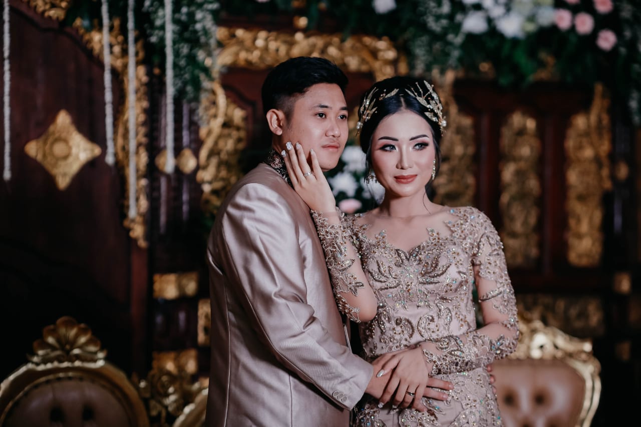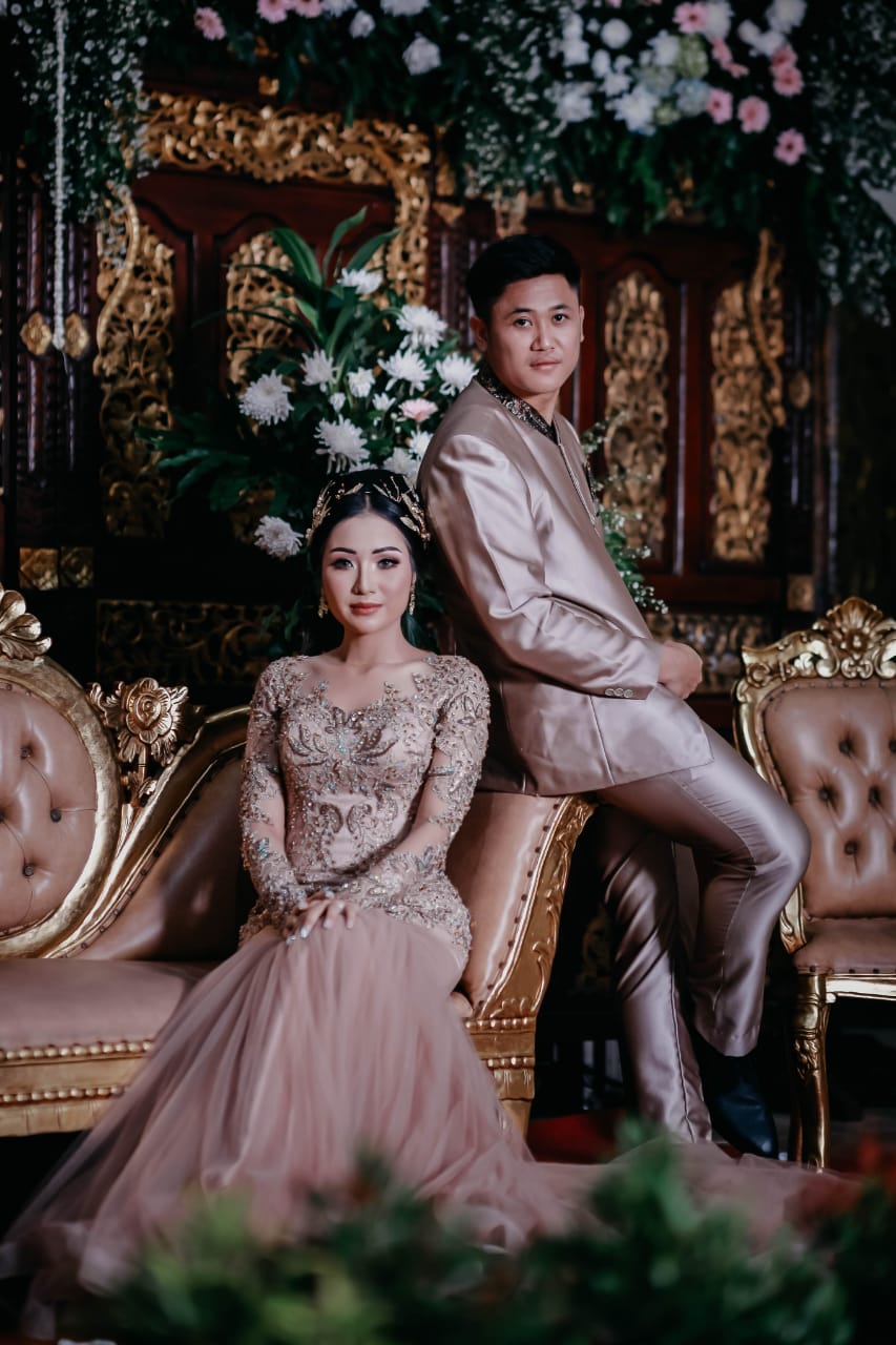 Keluarga muda sedang berpose menggunakan adat jawa tradisional